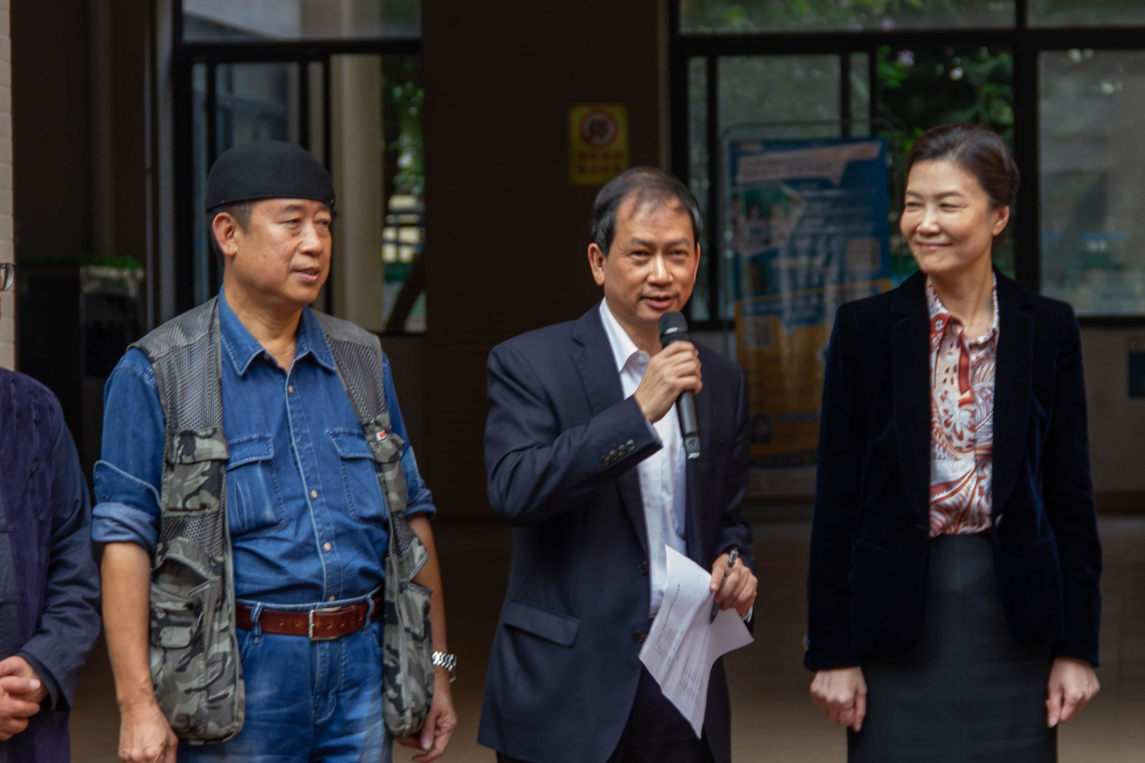 我校王庭槐校长与广州服装行业协会会长钟课枝共同为人才培训与产学研基地揭牌。仪式由我校艺术设计与传媒学院蔡照波院长主持。我校艺术设计与传媒学院的师生代表、周国屏副院长、网络与新媒体专业黄慰汕主任及学科带头人王首程教授、艺术设计学专业书法学方向班学科带头人吴慧平教授及广州服装行业协会领导、企业家等百余人出席仪式,共同见证揭牌。