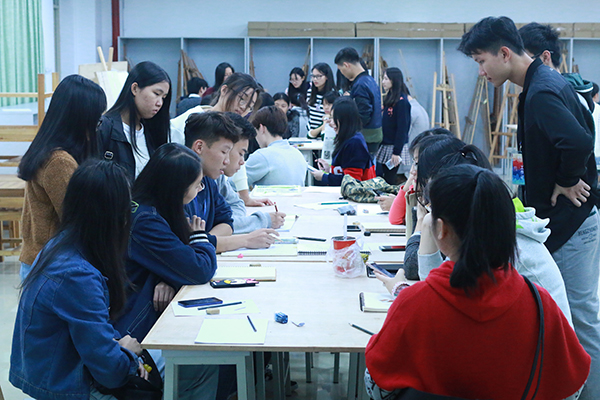 据了解,艺术设计学系作为学院唯一艺术类学科,专业师生一直将为新华展现更多的艺术享受作为责任,通过绘画实践活动的开展,与非艺术专业同学共享资源,互相提高艺术修养,学生在创作的过程中,对艺术、对美学有更深入的认识。