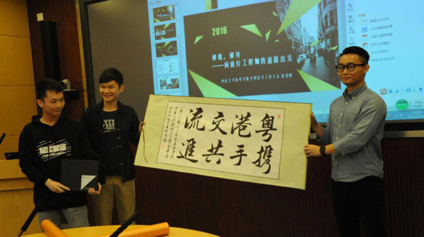 中山大学新华学院校长王庭槐教授特意为交流会题词:“粤港交流,科技生辉”。