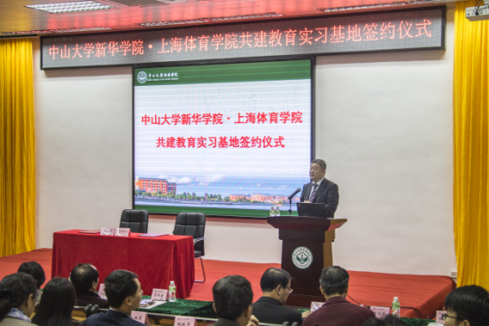 3月7日下午,“中山大学新华学院·上海体育学院共建教育实习基地签约仪式”在广州校区举行。我校李中生副校长、上海体育学院体育教育训练学院丁海勇院长分别代表两校签约。上海体育学院毛丽娟副院长、教务处山广副处长,我校王庭槐校长、周云书记、体育部名誉主任樊莲香共同见证签约。许淑锐副校长主持签约仪式。