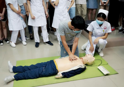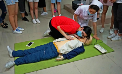 我校护理学院魏老师从评估环境、判断意识、呼救、判断脉搏与呼吸、心脏胸外按压、人工呼吸等方面详细的讲解了急救知识和CPR(心肺复苏)的相关知识,现场演示了在人体模型上操作心肺复苏术的技巧和方法,并指导同学们在人体模型上完成心肺复苏术实操。
