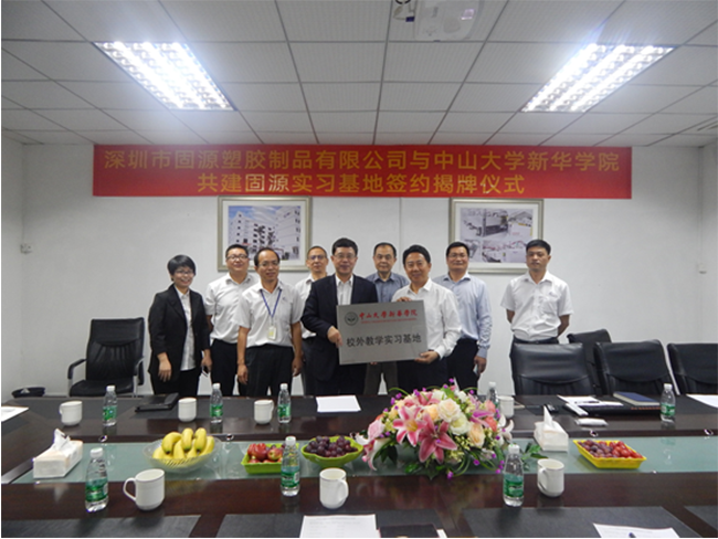 4月25日,我校管理学院与深圳固源塑胶制品有限公司签署了高校实习基地协议,同时举行实习基地揭牌仪式。深圳固源总部总经理王鹏、我校管理学院执行院长彭建平,专业主任方轮、教师雷飞共同出席此次揭牌仪式。