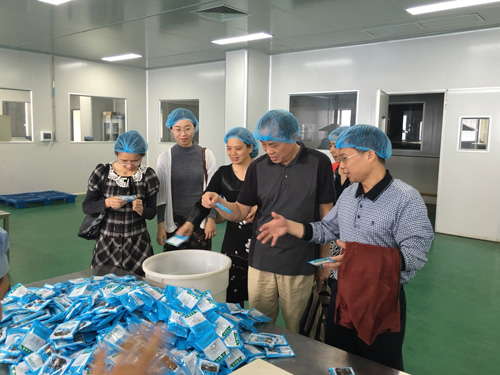 会后,尹小川一行在李经理的带领下实地参观企业厂区建设、先进的加工设备、保证质量的供应链,观摩了质检中心、配送中心等生产线。