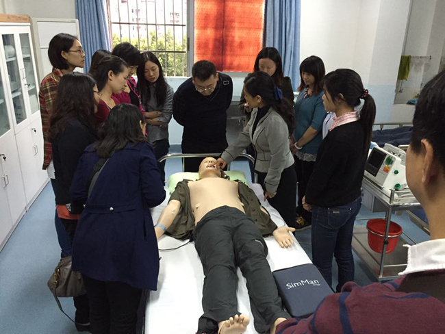 11月10日下午,北京城市学院生物医药学部主任朱俊华教授、郭丰副教授、生物医药学部护理专业主任赵丽丽、秦雯副教授、薛瑾博士、刘临英老师、护理专业秘书叶启蒙老师一行7人来访我院参观交流。我院医学系主任王秀岚教授、护理实验室于凤兰老师及医学系各位老师与来宾进行座谈。双方就学生培养经验、护理实验室设计理念及思路、实践教学等方面进行了探讨。王秀岚主任介绍了我系护理专业的学科概况和专业建设目标、人才培养目标情况。