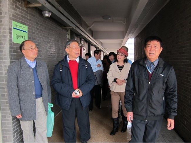 2012年3月2日上午10时,母体学校中山大学57名离退休老领导莅临我院东莞校区参观和 指导工作。他们在学院刘美南书记、陈伟林院长、蓝永金副院长副书记(兼校区管委会主任)、陈荣冠副书记、李沐林副院长、叶锦昭副院长、行政人事部丁艮平部长,校区管委会杨帆常务副主任、简庚荣副主任等领导的陪同下,依次重点参观了校园的学生宿舍、临时行政办公楼、运动场、学生食堂、教师公寓、教学楼。