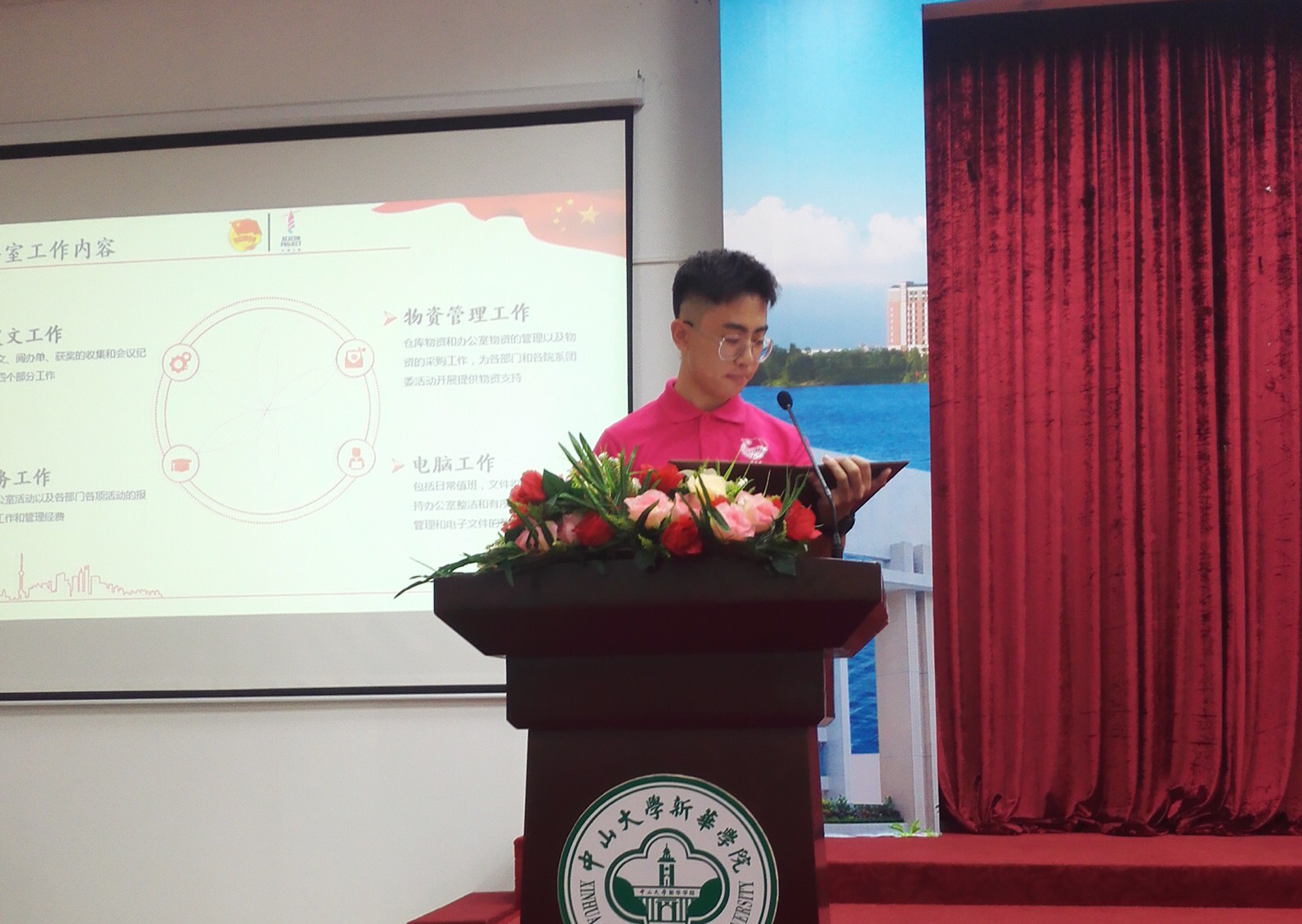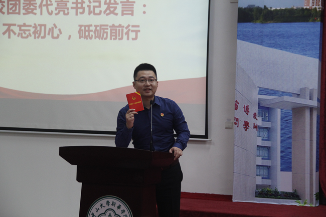 校团委新生代表刘真君同学发言。她向老师以及师兄、师姐们表示感谢,表达了加入校团委的喜悦之情,并用一句“激情过后便是责任”总结了作为校团委新成员肩负的强烈责任感和使命感。她表示作为校团委储备干部,一定会虚心向各位老师及师兄、师姐们学习,坚定踏实地迈出工作的每一步,培养和激发潜在能力,争做优秀的共青团干部。