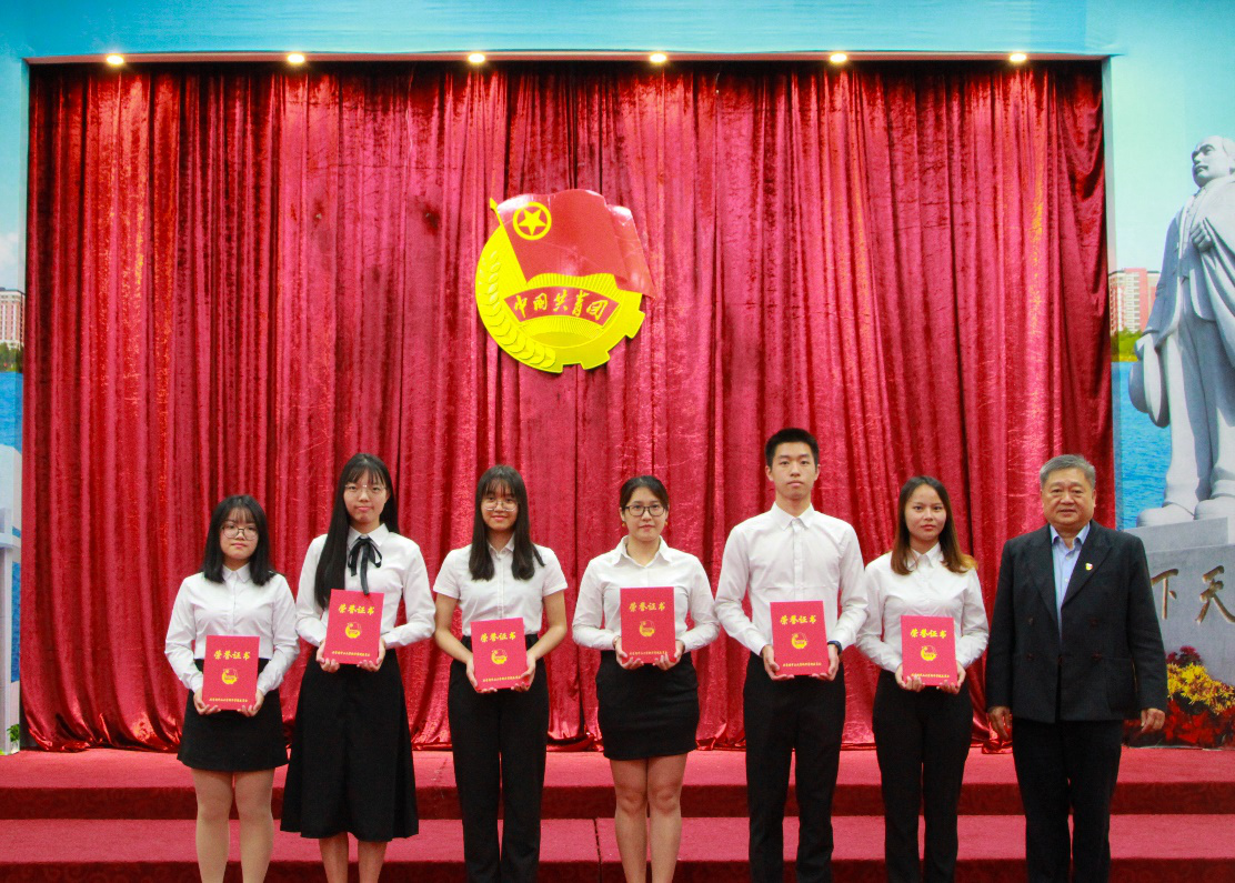 蓝永金副校长、副书记(右一)为“优秀实践个人”代表颁奖