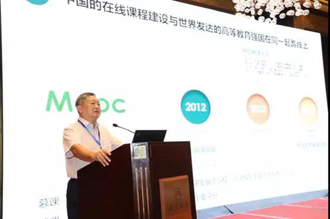 在大会报告环节,国家级教学名师、中山大学中山医学院心血管生理学教授、中山大学医学情报所所长、中山大学新华学院校长王庭槐教授应邀作主题报告。王教授从机制、平台和课程三个方面分析了当前国内外医学在线课程的发展现状,提出了当前在线课程建设所面临的问题和挑战,以及未来教育的发展趋势,同时对构建可持续发展的在线课程建设模式提出了建设性的思考与建议。