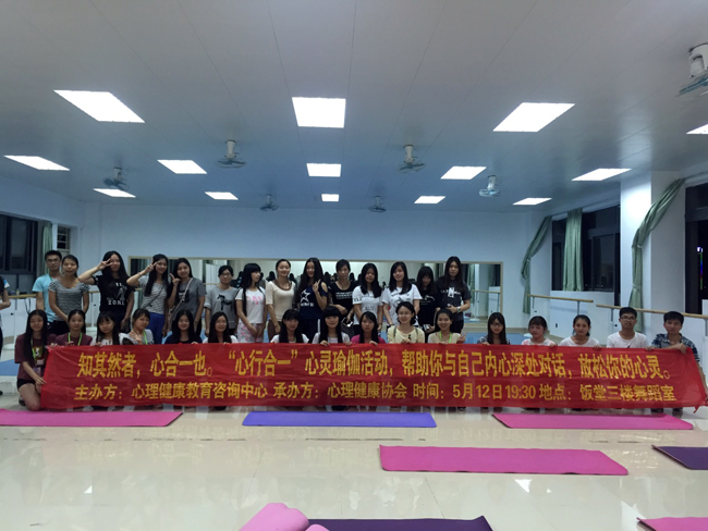 在生活和学习中,我们总是不可避免的遇到各种麻烦和困难,也总是需要面对各种压力。“心行合一”心灵瑜伽活动传递给大家这样一个理念:与内心深处的自己对话,放松你的心灵,感受自我,安抚你内心的焦虑与烦躁,才能更好,更高效地学习、生活和人际交往。