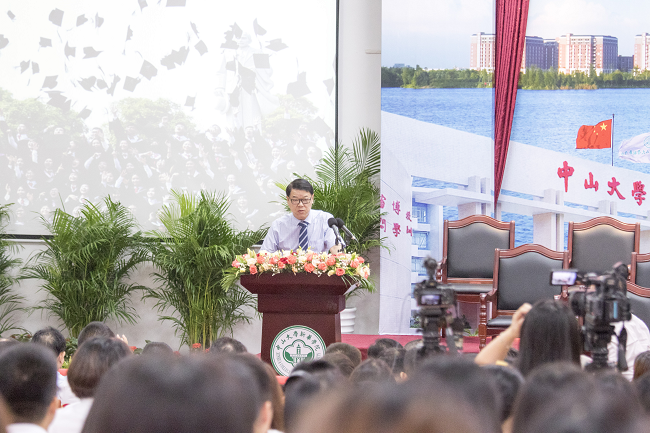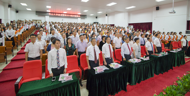 6月23日上午,中山大学新华学院2018届毕业典礼在东莞校区举行。学校领导、教学督导,各教学单位负责人、首席教授、学科带头人、教师代表,各职能部门负责人及部分学生家长等出席典礼,为2018届5091名毕业生送上祝福。李中生副校长主持典礼。