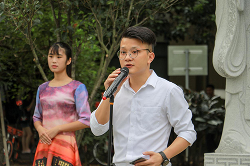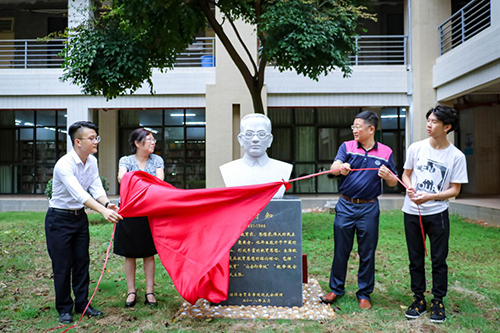 副校长、副书记蓝永金主持校园名人雕像揭幕仪式