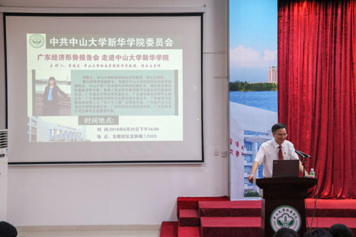 广东经济形势报告会于6月29日下午在中山大学新华学院(以下简称我校)东莞校区定静楼①F203举行,并在我校广州校区D101讲学厅分会场进行网络直播。