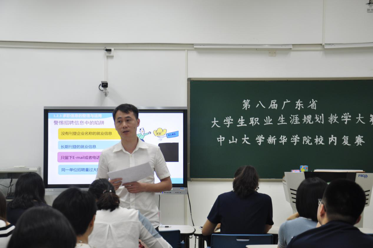 根据《广东省教育厅关于举办第八届广东省大学生职业生涯规划教学大赛的通知(粤教毕函[2018]10号)》文件精神,为进一步加强我校就业与创业指导课程和教学师资队伍建设,切实提高我校大学生职业生涯规划课程教学水平与效果,推选我校优秀教师参加广东省教学大赛,我校就业与创业教研室于5月23日上午9时举办第八届大学生职业生涯规划教学大赛校内复赛。