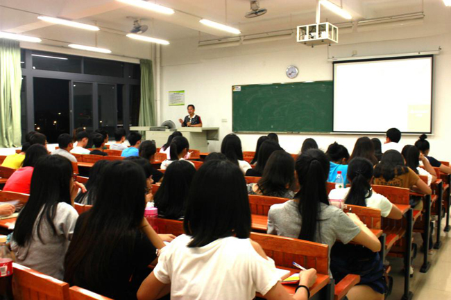 4月28日晚,为提高教学质量和激发学习兴趣,法律学系主任李正华教授在东莞校区教学楼①C301为2013,2014级学生开展了题为“快乐地学习,寻找最好的老师”的讲座。