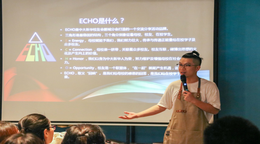 活动主要策划者05级工管赖勉之在台上向我们阐述ECHO的意义