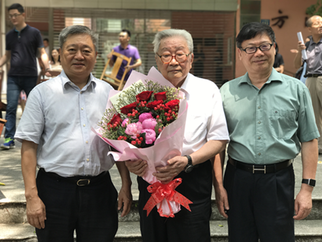 王庭槐校长代表学校祝福夏老:“桃李天下,寿比彭祖。”
