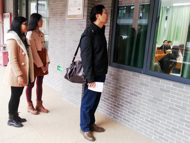 我系副主任方建国副教授(右一)与辅导员严查第一节课