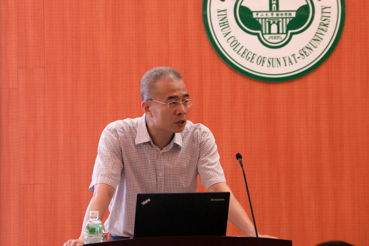 为认真学习习近平总书记在参加十三届全国人大一次会议广东代表团审议时的重要讲话精神,贯彻落实习近平新时代中国特色社会主义思想和党的十九大精神,迅速把全校党员干部的思想和行动统一到习近平总书记对广东省提出的“四个走在全国前列”的重要指示精神上来,4月24日上午,我校党委在广州校区第一会议室召开党委理论学习中心组(扩大)学习会,邀请了广东省社会科学院院长王珺教授作题为“四个走在全国前列:学习习近平总书记在十三届全国人大一次会议广东代表团审议时的讲话精神”的专题辅导报告。此次辅导报告会由校党委书记周云同志主持,校党委理论学习中心组成员,各二级党组织正副职负责人,机关各职能部门正副职负责人,各党支部书记,各二级团委书记,马克思主义教学研究部教师与会学习。