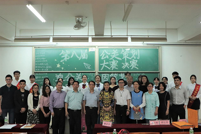 4月26日晚,我校公共管理学院在东莞校区定静楼②A401举行“第八届公关策划大赛决赛”。决赛邀请了广东方圆公关公司总经理谢景芬先生、广东科学中心战略发展中心主任陈之明先生,协办单位广州心灵生命将康之潜能研究社负责人张锦华女士、广州心灵生命将康之潜能研究社部长詹闰贻女士等中国大学生公关策划大赛总决赛评委作为校外评委;公共管理学院副院长谭昆智副教授、路月玲老师、廖毅老师、罗海娇老师、马子涵老师等担任本次活动的校内评委。