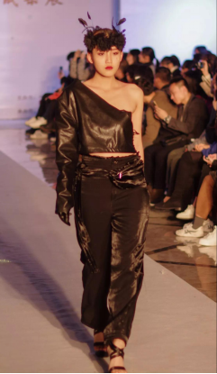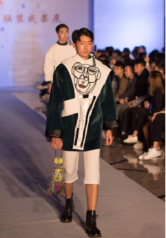 本次成果展展出了艺术设计学系2015级学生27个系列服装设计作品,由指导老师张长敏结合《创意服装设计》课程指导完成。同学们根据采风所得的灵感,经由创意思考进行设计方案构思与绘制,确立设计方案后开始进行纸样设计,用白坯布制作头版样衣试样审板,根据老师给出的修改意见进行板型修正,确定板型后用合适的面料缝制完成。在服装设计中,有些系列还需要另外开发面料,自行设计印制面料花型、装饰细节,提升制作工艺等。每一件作品都凝聚了同学们的心血,参与设计服装的同学接受采访时说:“看到自己作品呈现在T台上,是一种鼓励,也是一种肯定。”
