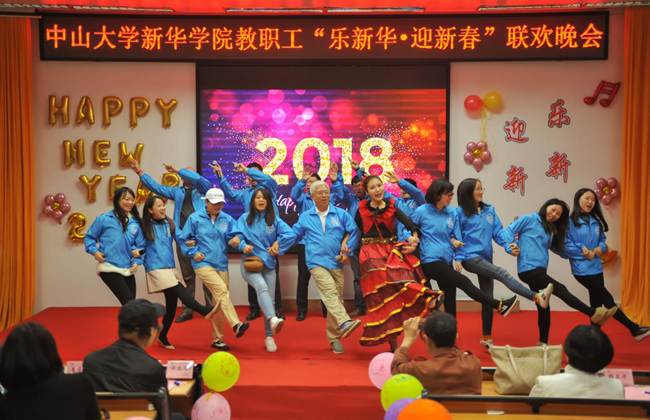 乘着十九大的东风,中山大学新华学院(以下简称学校)为迎接2018年新征程的到来,加强教职工之间的联系沟通,丰富教职工业余文化生活,“扬长守道,立本迎新”。12月28日晚,学校2017年教职工“乐新华·迎新春”联欢晚会在广州校区教学楼D101温暖上演。