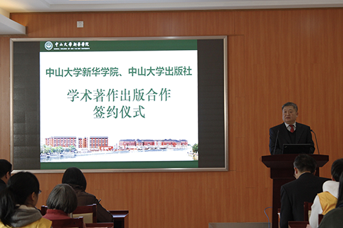 中山大学新华学院王庭槐校长为签约仪式致辞 张美萍摄