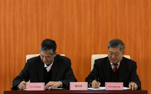 随后,王庭槐校长与徐劲社长分别代表中山大学新华学院和中山大学出版社签署协议。
