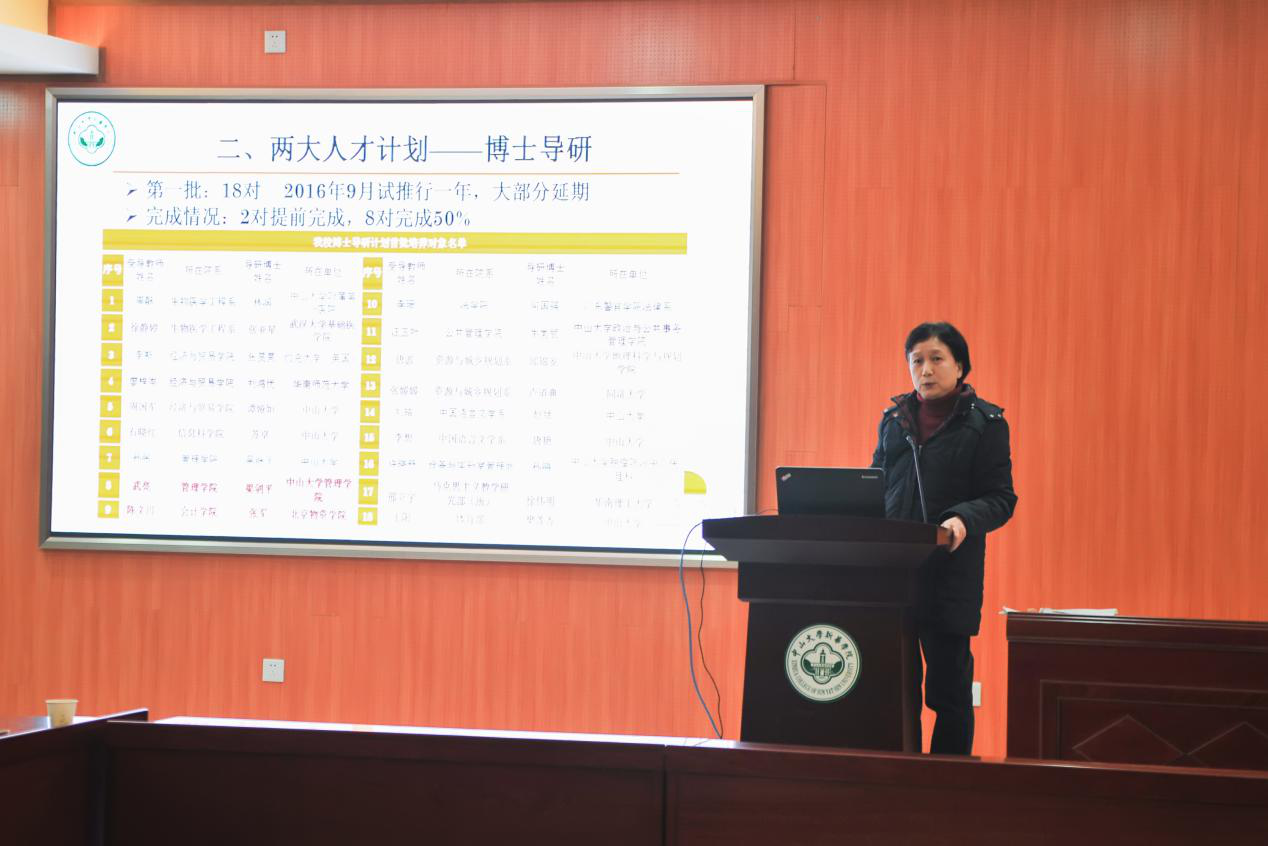 学科与科技管理处处长张玲从博士导研计划、海外导师导研导教计划、产学研等方面介绍了学校2017年学科建设与科研情况;教务处处长尹小川从培育新华品牌,做好省级教学研究项目申报,做精“逸仙新华班”,严控教学质量,狠抓教学管理等方面汇报了学校2017年教育教学情况;人事处处长简庚荣从学校师资队伍现状、“六大人才计划”进展及效果、“放管服”人事改革工作等方面总结了学校2017年人才引进与培养情况。
