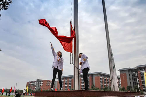 在庄严的升旗仪式后,我校党委书记周云为运动会开幕式致辞。她对参与本次校运会的工作人员表达了衷心的感谢。她指出,本次运动会是对我校推行素质教育,发展体育运动,增强拼搏精神,提高学生素质以及展示体育水平和质量的一次大检阅。她表示,我们学校的高水平运动队在广东省乃至全国的体育比赛中屡创佳绩,这些成绩的取得展示了我们学校体育运动事业在不断的发展,下一步我们要按照2016年国务院印发的《健康中国2030的规划纲要》和党的十九大报告中提出的广泛开展全民健身活动,加快推进体育强国建设的要求,按照推进健康中国建设的这个重大的国家战略,根据我校的体育工作事业的发展,要进一步提高全校师生体质,在整个学校的人才培养中充分发挥体育育人的协同作用,为健康中国做出我们应有的贡献。最后,周云书记希望全体运动员以高昂的斗志参与到比赛中,全体裁判员和工作人员坚守“公开、公正、公平”的原则参与到此次运动会中。