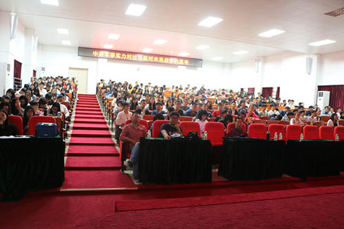汪朗副教授通过图片展示和列举大量实例,深入浅出地从中美两军装备实力对比、我国应对未来战争的认识与思考两大方面进行了阐述,增进了同学们对中美军事实力对比的了解,同时促进了学生对未来战争的思考。汪朗从我国的军事发展史和当今现实实力的角度,理论联系实际,并得出结论:我军军事发展来之不易,决定战争胜负的根本因素是人而不是物,强大的军事力量是实现中华民族伟大复兴中国梦的坚强保障。