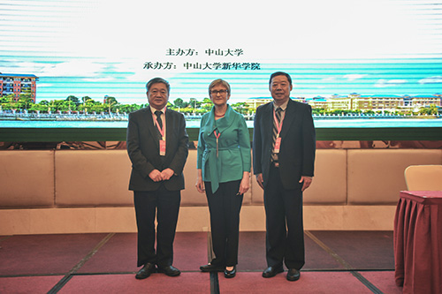 王庭槐校长代表承办方感谢来自美国南加州大学物理治疗专业Kornelia Kulig教授和何兆邦教授等8位专家出席中美康复教育高峰论坛并作学术报告。谈到南加州大学,王校长盛赞这是一所享誉全球的私立研究型综合性大学,是全美本科最具竞争力的大学之一。王校长还介绍了中山大学新华学院的办学传统和教育理念、办学宗旨、发展思路、教学模式、教学原则、人才培养目标以及实验实训平台、校外实践基地建设等概况,解读了中山大学新华学院康复医学系等医学类专业的办学特色、办学定位和人才培养目标。