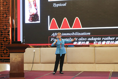 美国骨科人工物理治疗师学院八个创始成员之一Kornelia Kulig教授作题为“肌腱病相关的过度和错误使用、运动障碍和神经力学适应性变化”专题演讲