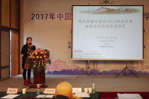 在19日下午举行的青年学术报告单元,一批来自各大高校、院所的青年学者、教师代表作了论文报告,分享其研究方法和研究发现。其中,复旦大学基础医学院周璇作《Upregulation of AT1 Receptor Mediates Pressor Effect Through ROS-SAPK/JNK Signaling in Glutamatergic Neurons of RVLM with Stress-Induced Hypertensive Rats》论文报告,郑州大学罗天霞作《Interaction of Junctophilin 2 with Ryanodine Receptors in mouse cardiac myocytes 》论文报告,中国医学科学院医学研究所蔺彩霞作《纳米银粒子对心脏电生理的急性毒性和机制研究》论文报告,苏州大学基础医学与生物科学学院生理系尹学敏作《血管紧张素Ⅱ诱导动脉粥样硬化病变的机制研究》论文报告,首都医科大学基础医学院王鹏丽作《Long-term stimulation of AT1-AA on H295R cells can inhibit aldosterone secretion by triggering calcium overload》论文报告,南京医科大学熊晓青作《FNDC5 attenuates obesity-induced adipose tissue inflammation via AMPK-mediated macrophage polarization》论文报告,宁夏医科大学杨安宁作《Homocysteine enhances production of pro-inflammation factors by foam cells through inhibition of miR-195-3P expression》论文报告,陆军军医大学大坪医院(野战外科研究所)郑丹阳作《内皮细胞微粒在脓毒症大鼠血管渗漏中的作用及机制》论文报告,西南医科大学马开龙作《KCNQ1基因孔区突变导致LQT1的机制研究》论文报告,中山大学中山医学院王晨作《VCAM-1 in 2-ME Inhibiting Monocyte-Endothelial Cell Adhesions》论文报告,中山大学中山医学院李劼昊作《慢性迷走神经刺激对结肠粘膜炎症反应的调控作用及生物反馈机制研究》论文报告,中山大学新华学院徐静婷作《Jia-jian-yi-yin decoction improves endothelium-dependent dilation in ovariectomized rats by reducing oxidative stress and enhancing nitric oxide production and bioactivity》论文报告,海军军医大学孙嘉岑作《beta-arrestin1下调高血压中枢AT1R改善氧化应激的作用研究》论文报告,中山大学孙逸仙纪念医院刘文浩作《Fueling IL-10 expression: mechanism of IL-33 reducing foam cell formation》论文报告,宁夏医科大学张辉作《Homocysteine enhances lipid accumulation in foam cells by down regulation of scavenger receptor class B member 1 (SCARB1) expression via DNMT3b/SP1 pathways》论文报告,西安医学院陈玉龙作《同型半胱氨酸调控血管平滑肌细胞内皮素β型受体的分子机制》论文报告,陆军军医大学大坪医院(野战外科研究所)张杰作《CX43对脓毒性休克大鼠血管渗漏的调节作用及机制》论文报告。