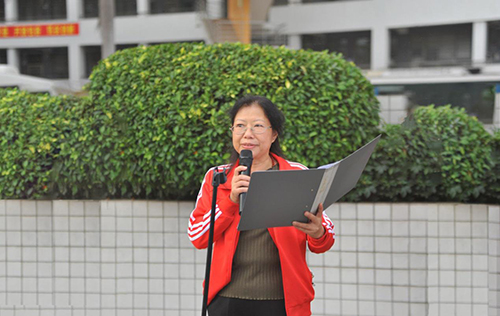 校工会主席丁艮平宣布环山拉练活动评选结果