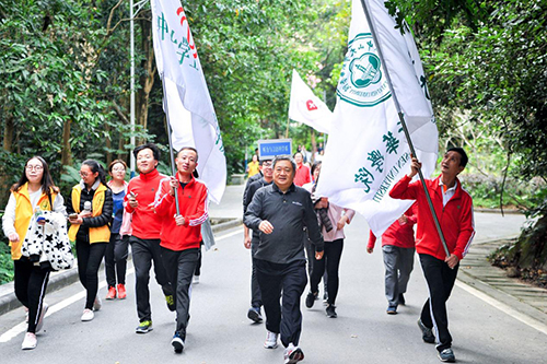 王庭槐校长为此次环山拉练活动作动员讲话。他表示,党和国家高度重视体育工作,党的十九大报告中提到要“广泛开展全民健身活动,加快推进体育强国建设”。全民健身运动参与面广、综合性强,是学校深化教育教学综合改革的重要举措,广大教职员工要以饱满的热情积极参与健身运动,活跃学校文化氛围,促进师生身心健康,推动学校各项事业的发展,并宣布“环山拉练”活动正式开始。