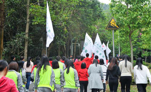 一声口令,由王庭槐校长,周云书记带领,各院(系)部、处代表队迎着温暖和煦的微风,从火炉山北门出发,一路上,各个队伍的口号和欢笑声不绝于耳,给清幽的火炉山增添了几分生气。大部队在山腰的五角亭作短暂的休整后,继续向终点站荷花池进发。往返途中,全体成员都精神抖擞,意气风发。浩浩荡荡一路向前的队伍,也成为火炉山一道亮丽的风景线。