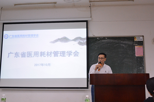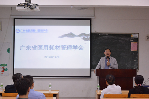 陈仲本院长首先对到场的各位专家做了简短的介绍,向同学们简单介绍了本学期即将开设的新方向情况。戴军进会长向同学们简单介绍了医用耗材以及广东省医用耗材管理学会的相关信息。广东省医用耗材管理学会是全国唯一医用耗材领域的省一级学会。学会的主要职能是推广新技术、新方法、新工艺产品,研究实施科学合理的医用耗材管理模式,评估和评价医用耗材在临床医疗服务中的有效性、安全性和可靠性。戴会长通过介绍学会的职能让同学们深刻意识到,医用耗材的管理将会在未来的医疗事业中占据更为重要的地位,即将开设的新方向与现今同学们所在的本专业有着相辅相成的关系。戴会长将“医用耗材”与即将开设的新方向结合起来,鼓励同学们加入到新开设的专业方向中来。