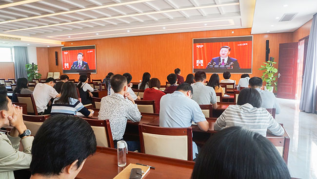 上午8:30,广大师生就集中到单位的会议室和集中收看地点,做好收看准备。报告伊始,大家聚精会神,仔细聆听报告内容,并不时做记录。同志们不时为习近平总书记的报告所鼓舞,会后纷纷发言说:党的十九大为中国特色社会主义进一步指明了前进的方向。作为党员干部,要牢固树立“四个意识”,坚定“四个自信”,坚决维护和捍卫习近平总书记在党中央和全党的核心地位,在思想上、政治上、行动上同以习近平同志为核心的党中央保持高度一致,立足本岗,为决胜全面建成小康社会、实现中华民族伟大复兴中国梦而努力奋斗!