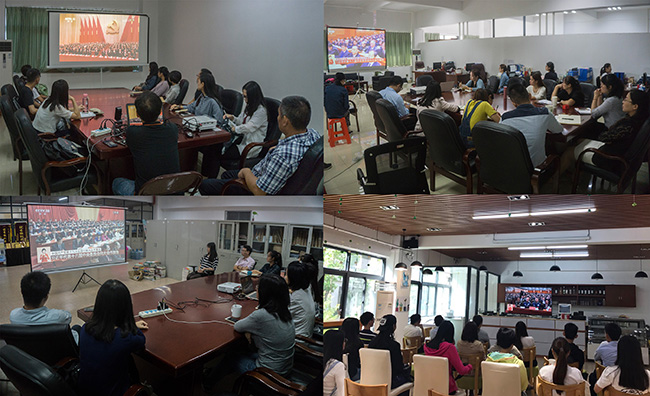 我校党委积极组织广大师生党员收看党的十九大开幕会盛况,教育和引导广大师生全面准确地理解党的路线、方针和政策,深刻领会十九大精神,校党委书记周云、校党委委员与机关党总支党员一起收看了十九大开幕会,认真聆听和学习习近平总书记的报告。同时,我校各二级党组织、党支部在不影响学校正常教学秩序的前提下,分别在穗莞两校区组织师生集中学习。
