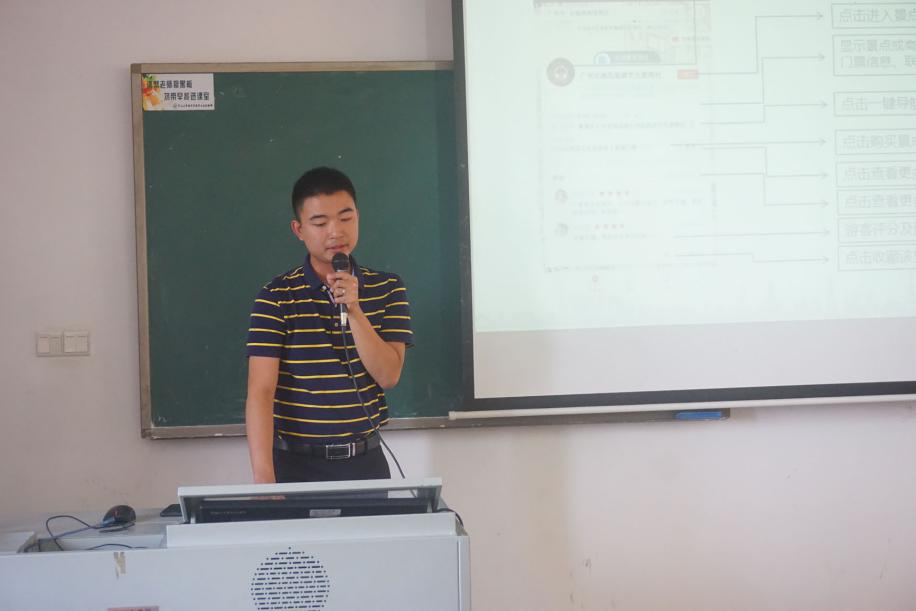 广州巨有文化发展有限公司关安耀先生重点介绍了广州巨有文化发展有限公司的“途礼游”平台,他说,“‘途礼游’是一个即时帮助游客更快捷地了解景点以及相关信息的平台,大学生可以通过参加平台中景点建设、销售平台产品和编写营销故事进行创业。”该企业为大学生提供了非常难得的实践经验和创业机会。