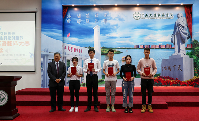2017年10月21日,由东莞市教育局、东莞市人力资源局、东莞市科学技术局、共青团东莞市委员会主办,共青团中山大学新华学院委员会、中山大学新华学院外国语学院承办的以“科技创新,引领未来”为主题的第三届东莞市大学生科技创新节之商务英语翻译大赛决赛于中山大学新华学院东莞校区成功举办。
