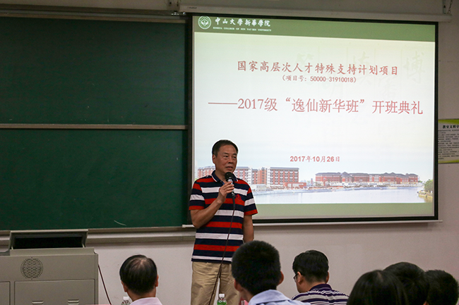 开班典礼上,李中生副校长致辞。他表示,“逸仙新华班”是我校创新人才培养模式的实践班,是深化本科教育教学改革的实验班,是学生优秀学风的引领播种班,更是创新学习方式方法的验证班。他勉励2017级“逸仙新华班”的同学:同学们应该在“逸仙新华班”中培养并提升人格涵养、特长发展和综合素质,让其成为大学时光的荣耀之源。最后,他衷心地祝贺在座的74位同学经过层层选拔进入“逸仙新华班”开启学习之旅,希望他们四年后能成为中山大学新华学院最优秀的学子。