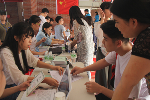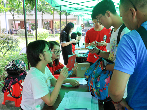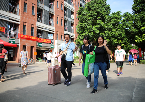 据悉,为做好迎接新生工作,迎新首日,校团委在校内外共组织了600人次以上的志愿者参与迎新工作,志愿者们分别从东莞汽车总站、天河客运站、广州东站、广州南站、省站、火车站迎接新生及家长。各院系志愿者则在校园里带领新生及家长完成报到入住手续。