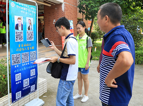 很多院系都设置了自己专业的班级微信群和家长微信群,新生及家长在报到现场就可以扫二维码,添加家长微信群,这不仅方便同学之间彼此相互熟悉,还会及时收到学校的各项通知,和辅导员“零距离”沟通交流,让家长也能够了解到学生在校的各项情况,有利于我校家校联动机制的搭建。