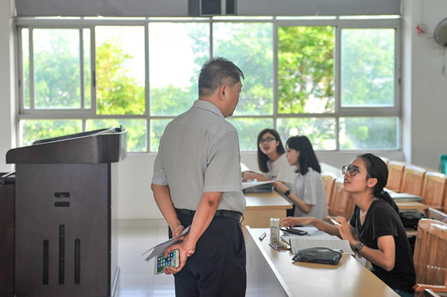 王庭槐校长提倡的新华家规“四个一”早已深入每个中大新华师生的内心。在新学期的第一堂课开始前,我校领导、教学督导已经来到教学区巡查、走访,走近课堂,了解学生的学习状态和老师的教学情况。