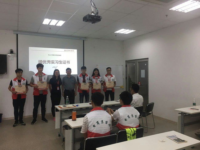 随后,企业方和校方围绕“参加本次轮岗实践的意义”、“参加轮岗实践对学生成长的影响”等话题进行发言。彭建平执行院长提出京苗班是一个探索的合作项目,旨在了解企业需要什么人才,要向企业提供什么人才。企方代表黄经理也认同本次学生社会实践工作内容,并指出学生学到的不仅是业务,更多的是职场规则,也表示了愿意与校方进行更深层的合作。最后,京东对我院京苗班同学轮岗实践中表现突出的9位同学颁发了“优秀学员”奖,对优秀小组给予奖励,并给工作中乐于奉献自己的同学送上了一份小礼物。