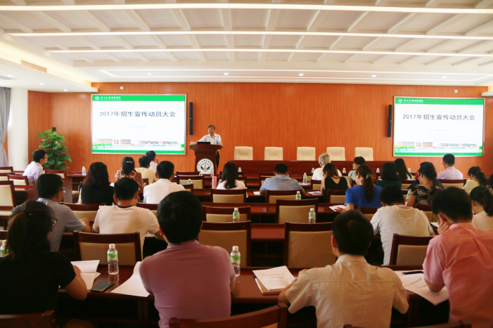 为明确招生宣传工作目标、激发招生宣传队伍的工作热情,更好地完成招生宣传工作,6月8日,学校招生办公室在广州校区召开了2017年招生宣传工作动员大会暨培训会。校长王庭槐,副校长李中生,招生办公室主任刘景毅,各院系负责人、招生宣传工作人员参加了本次会议,会议由教务处处长尹小川主持。