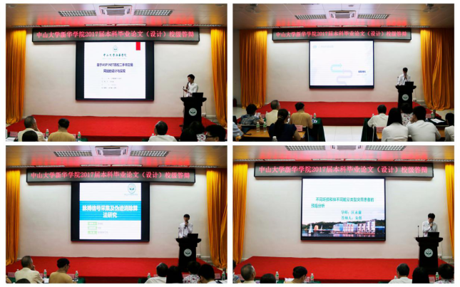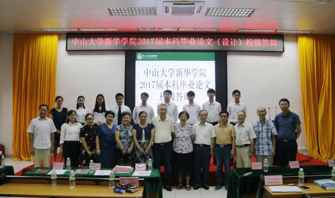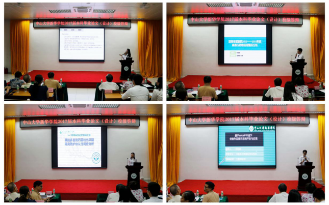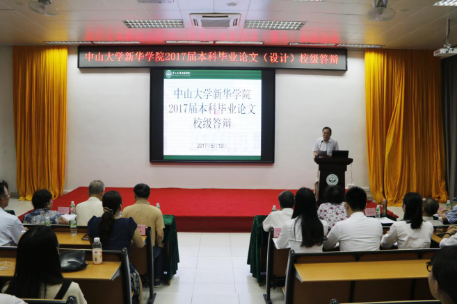 6月13日下午,由教务处主办,外国语学院、公共管理学院、药学系、会计学院及经济与贸易学院承办的中山大学新华学院2017届本科毕业论文(设计)校级答辩分别在广州校区和东莞校区如期举行。本次答辩共分成5组,分别由李中生副校长、教务处尹小川处长、刘琰琳副处长、王栋慧副处长和曾燕琼主持。各院(系)负责人、院(系)答辩委员、院(系)论文领导小组成员、指导教师、校外特聘教授出席,36位被随机抽取的毕业生进行答辩。
