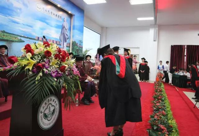 伴着熟悉的中山大学校歌《山高水长》的优美旋律,主礼教授代表手持中山大学新华学院权杖,带领由导师代表组成的主礼教授们步入会场。此刻,全场毕业生起立以最热烈的掌声恭迎主礼教授,2017年学士学位授予仪式正式启幕。