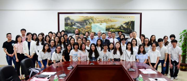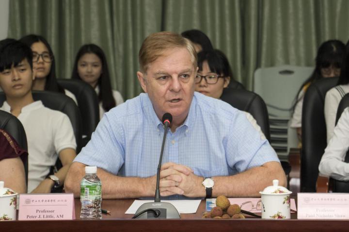 Prof.Peter J. Little AM对我校的热情接待表示由衷感谢,并向我校师生介绍了来访的药学专家、学者。他表示,近年来,昆士兰大学与中山大学新华学院始终保持着良好的合作关系,自己有幸成为新华学院药学系的首席教授,并与新华师生建立了深厚的感情。希望自己能够继续为新华学院的教育国际化事业添砖加瓦,贡献力量,携手培养出具有国际视野、可与国际接轨的复合、应用型药学人才。